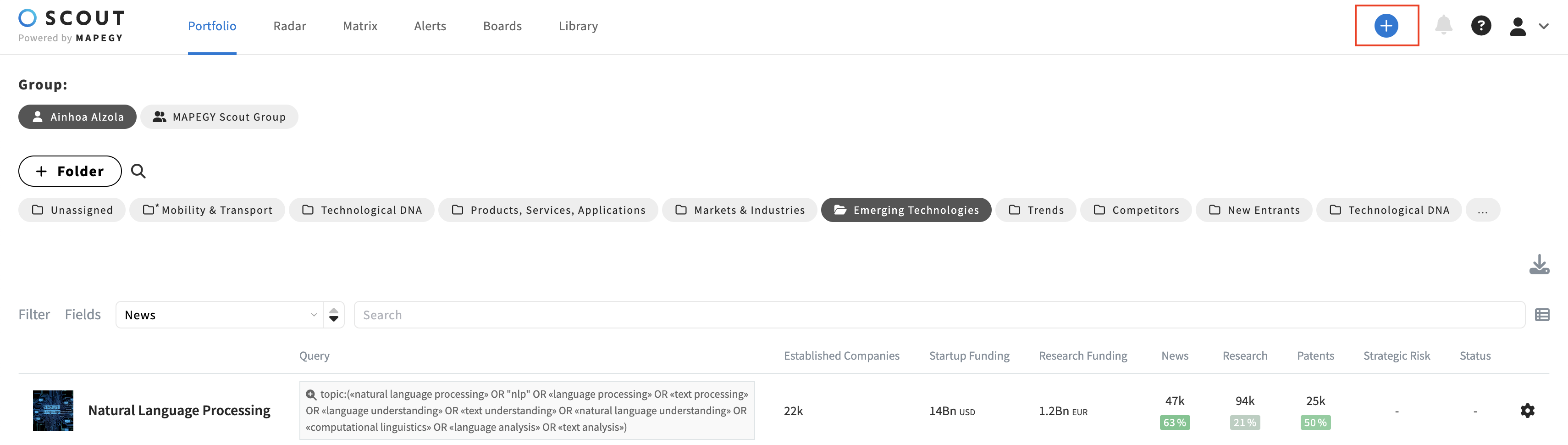 You can explore a saved query in the broader SCOUT Hub. Simply click on the saved search query from your Portfolio or Project page.